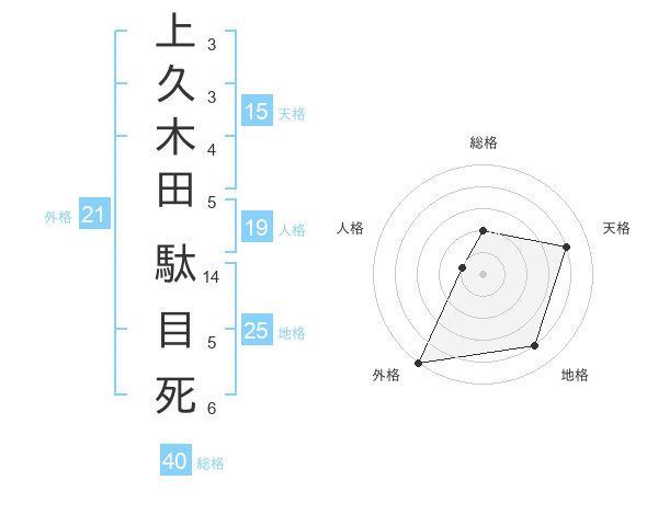 上久木田 駄目死さんを姓名の画数から五運を鑑定