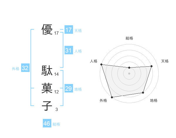 優 駄菓子さんを姓名の画数から五運を鑑定