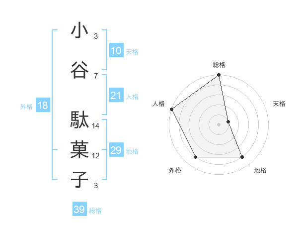 小谷 駄菓子さんの総格は39画の5点!