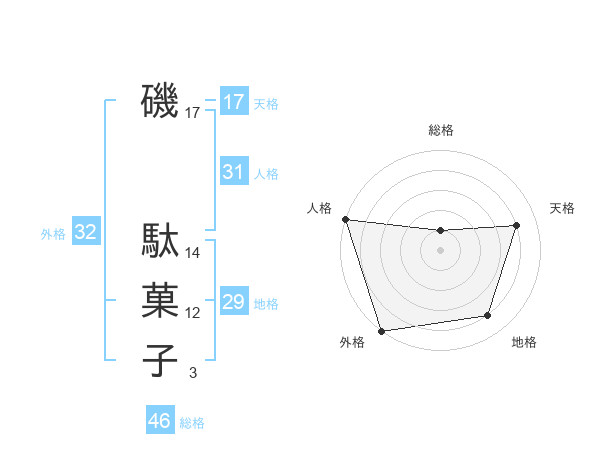 磯 駄菓子さんを姓名の画数から五運を鑑定