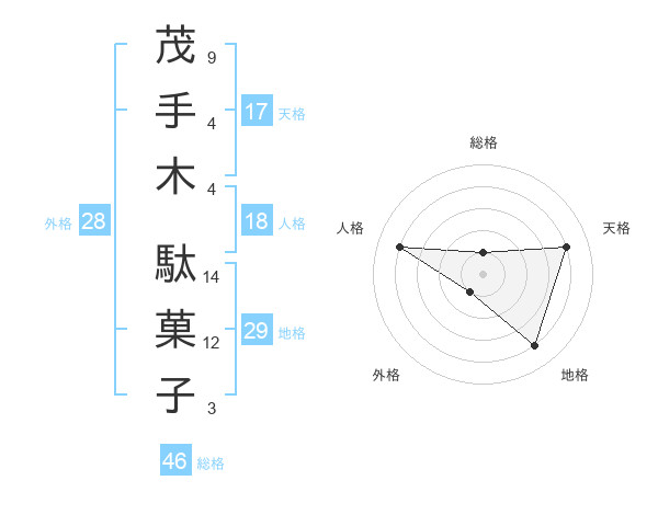茂手木 駄菓子さんの総格は46画の1点!