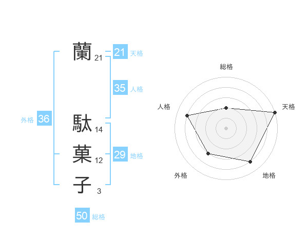 蘭 駄菓子さんの総格は50画の2点!
