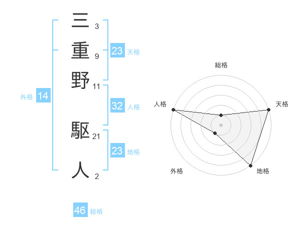 三重野 駆人さんを姓名の画数から五運を鑑定