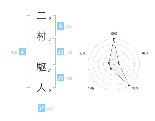 二村 駆人さんの総格は32画の5点!