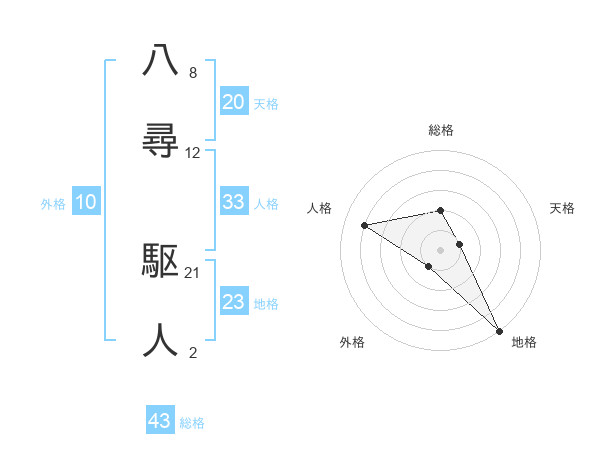 八尋 駆人さんの総格は43画の2点!
