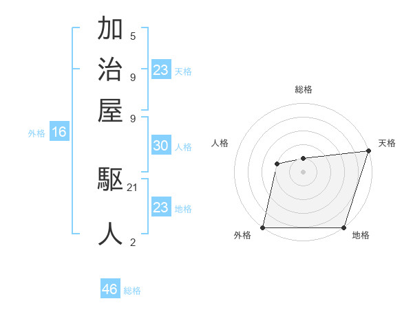 加治屋 駆人さんの天格は23画の5点!