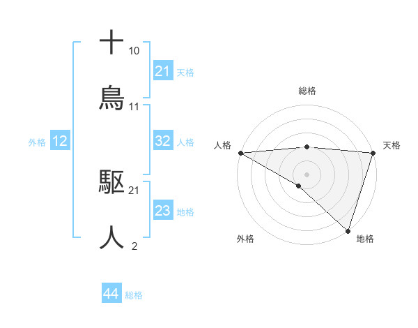 十鳥 駆人さんを姓名の画数から五運を鑑定
