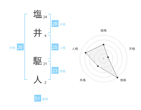 塩井 駆人さんを姓名の画数から五運を鑑定