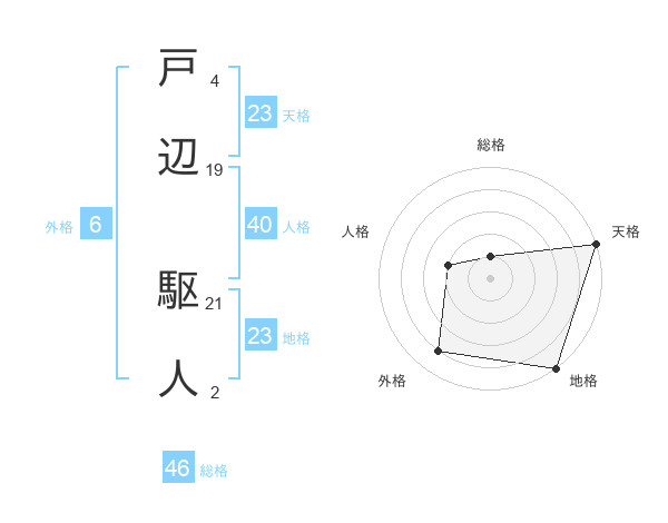 戸辺 駆人さんの総格は46画の1点!