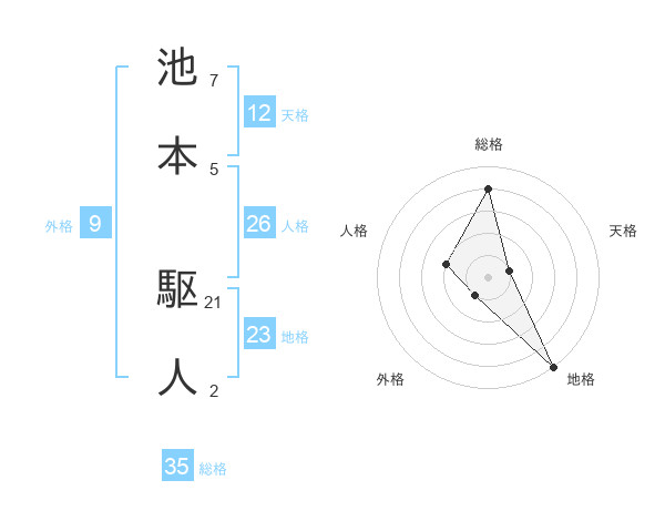 池本 駆人さんの総格は35画の4点!