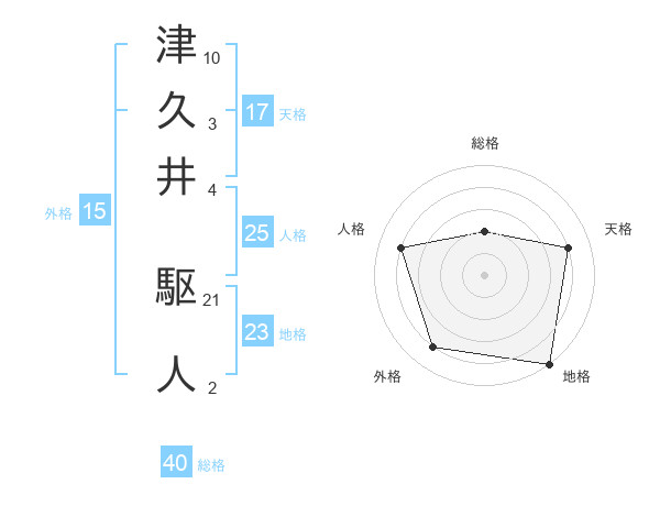 津久井 駆人さんを姓名の画数から五運を鑑定