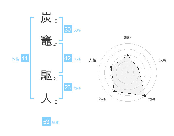 炭竈 駆人さんの総格は53画の3点!