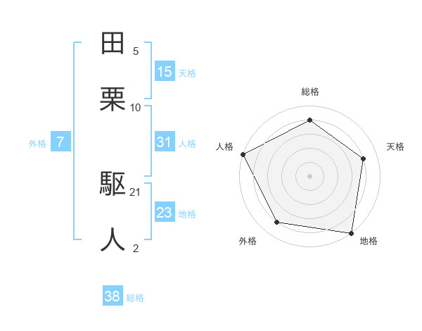 田栗 駆人さんを姓名の画数から五運を鑑定
