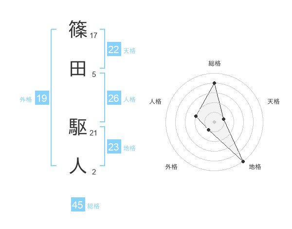 篠田 駆人さんの総格は45画の4点!