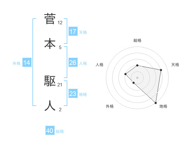 菅本 駆人さんの天格は17画の4点!