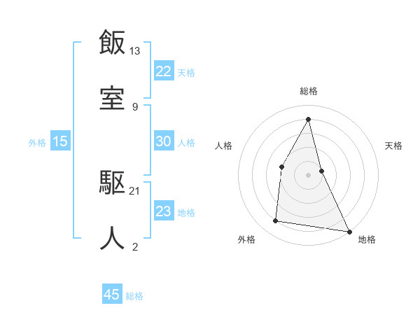 飯室 駆人さんの総格は45画の4点!