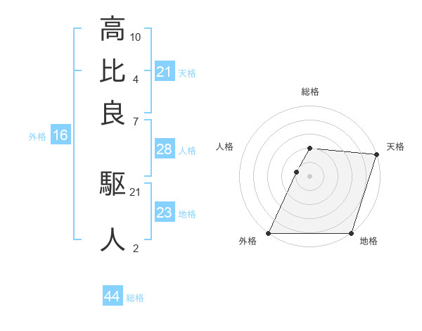 高比良 駆人さんを姓名の画数から五運を鑑定