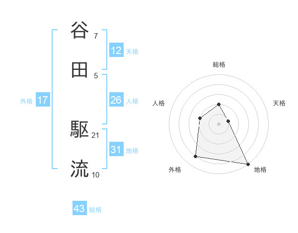 谷田 駆流さんの地格は31画の5点!