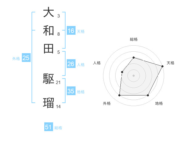 大和田 駆瑠さんを姓名の画数から五運を鑑定