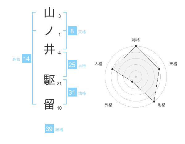 山ノ井 駆留さんを姓名の画数から五運を鑑定