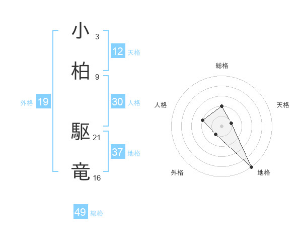 小柏 駆竜さんを姓名の画数から五運を鑑定