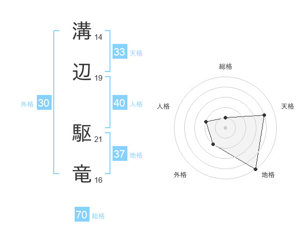 溝辺 駆竜さんの総格は70画の1点!