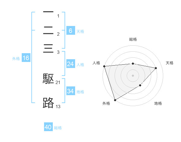 一二三 駆路さんを姓名の画数から五運を鑑定