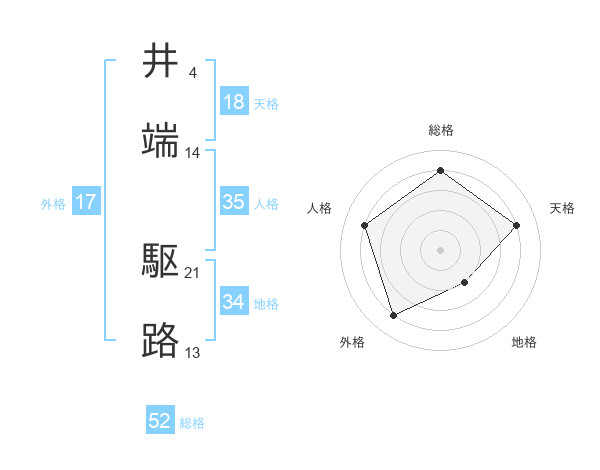 井端 駆路さんを姓名の画数から五運を鑑定
