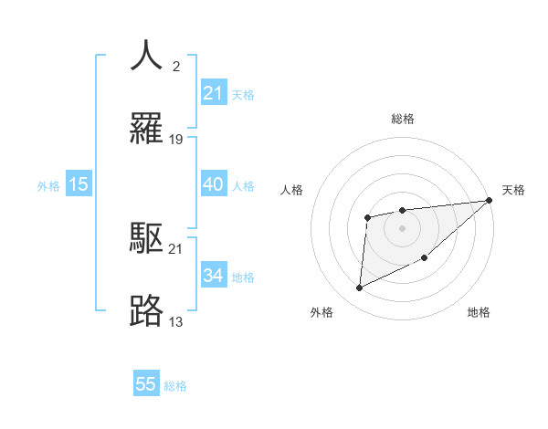 人羅 駆路さんの総格は55画の1点!