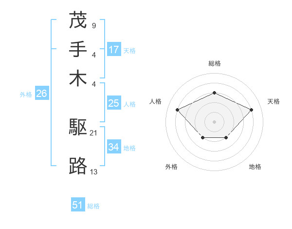 茂手木 駆路さんを姓名の画数から五運を鑑定