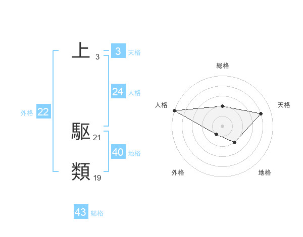 上 駆類さんの総格は43画の2点!