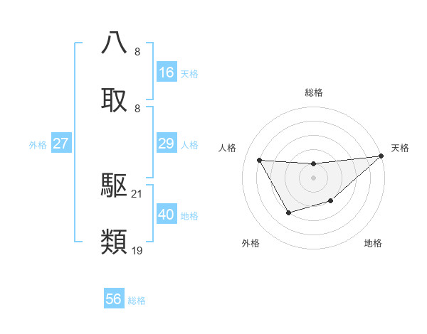 八取 駆類さんの総格は56画の1点!