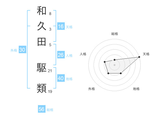 和久田 駆類さんの天格は16画の5点!