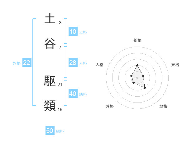 土谷 駆類さんの総格は50画の2点!