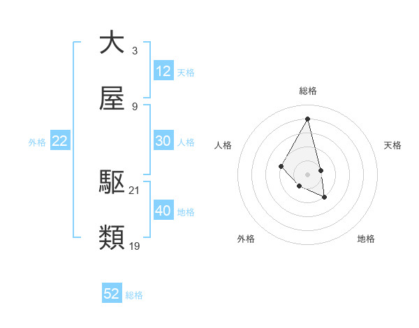 大屋 駆類さんを姓名の画数から五運を鑑定