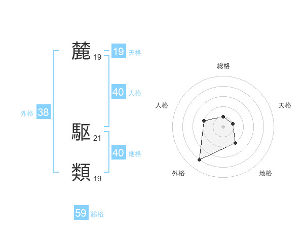 麓 駆類さんの外格は38画の4点!