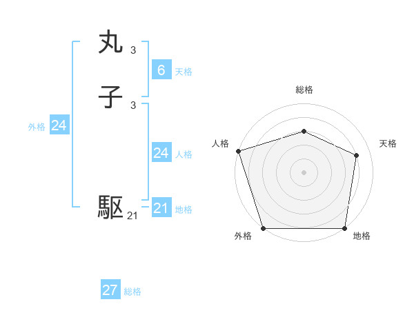 丸子 駆さんの総格は27画の3点!