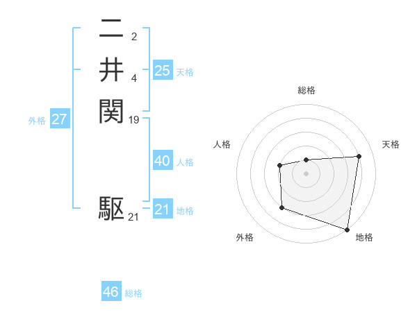 二井関 駆さんの地格は21画の5点!