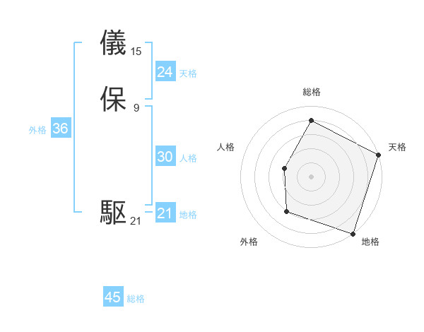 儀保 駆さんの総格は45画の4点!