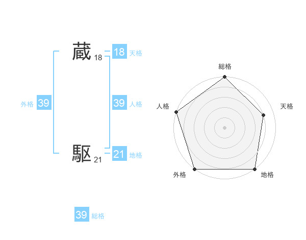 蔵 駆さんの総格は39画の5点!
