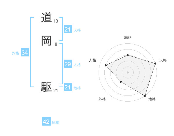 道岡 駆さんの天格は21画の5点!
