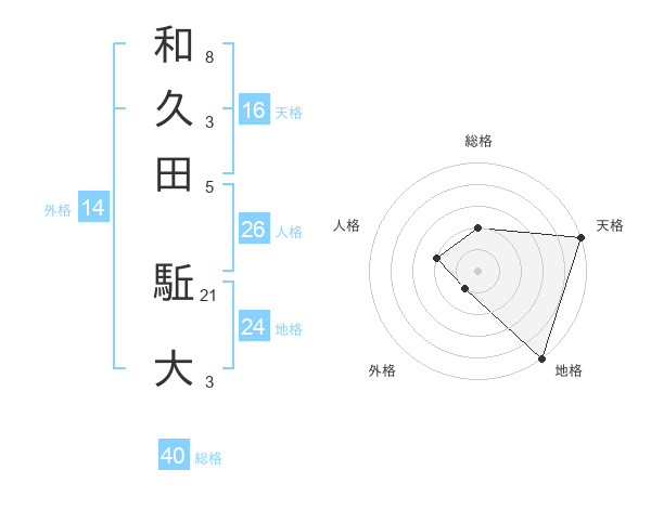和久田 駈大さんを姓名の画数から五運を鑑定