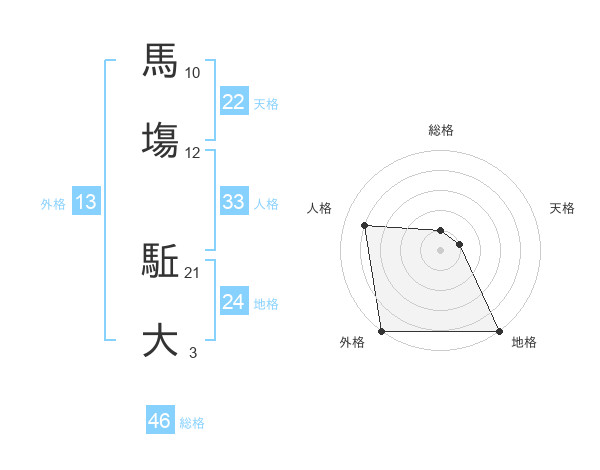 馬塲 駈大さんを姓名の画数から五運を鑑定
