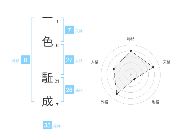 一色 駈成さんの地格は28画の1点!