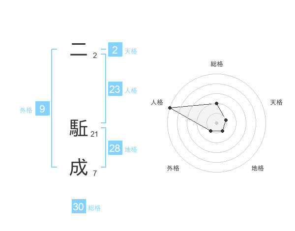 二 駈成さんの総格は30画の2点!