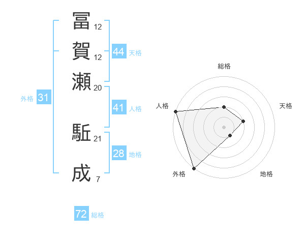 冨賀瀬 駈成さんを姓名の画数から五運を鑑定