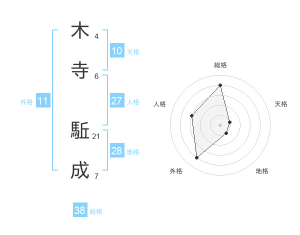 木寺 駈成さんの総格は38画の4点!