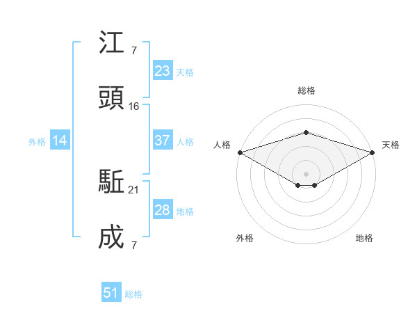 江頭 駈成さんを姓名の画数から五運を鑑定