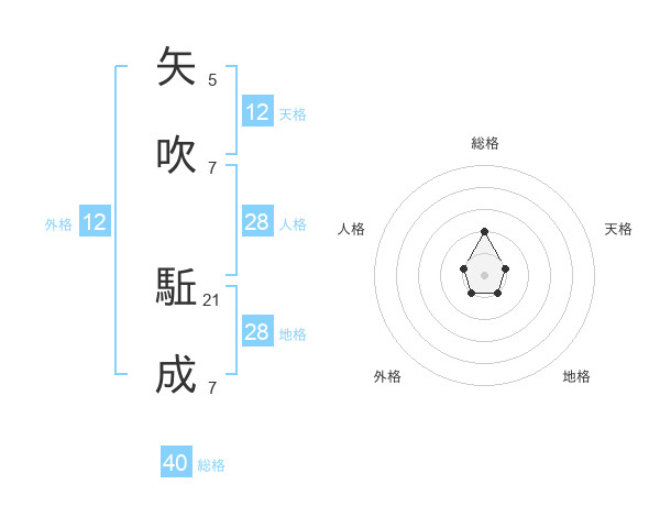 矢吹 駈成さんの地格は28画の1点!