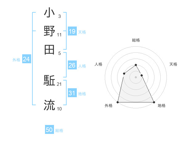 小野田 駈流さんを姓名の画数から五運を鑑定
